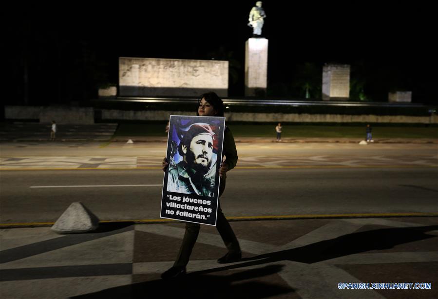 SANTA CLARA, noviembre 30, 2016 (Xinhua) -- Una estudiante sostiene un cartel mientras espera en el Mausoleo donde reposan los restos de Ernesto "Che" Guevara, previo al paso de la caravana que transporta las cenizas del líder cubano, Fidel Castro, en la Plaza Ernesto "Che" Guevara, en la provincia de Santa Clara, Cuba, el 30 de noviembre de 2016. El cortejo fúnebre con las cenizas del líder cubano Fidel Castro inició el miércoles su recorrido desde La Habana hacia la ciudad oriental de Santiago de Cuba, que rememora la histórica Caravana de la Libertad que protagonizó el exmandatario en 1959, pero en sentido inverso. (Xinhua/David de la Paz)