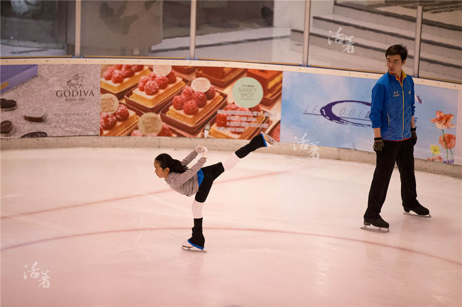 Duomi, de siete a?os, durante un curso de patinaje en Beijing. [Foto: qq.com]
