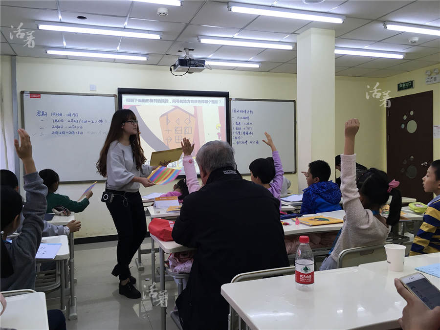 Un anciano acompa?a a su nieto a un curso de Olimpiadas de Matemáticas. Muchos padres envían a sus hijos que cursan la escuela primaria a los cursos de Olimpiada de Matemáticas porque les ofrece una ventaja para la inscripción en la escuela secundaria. [Foto: qq.com]