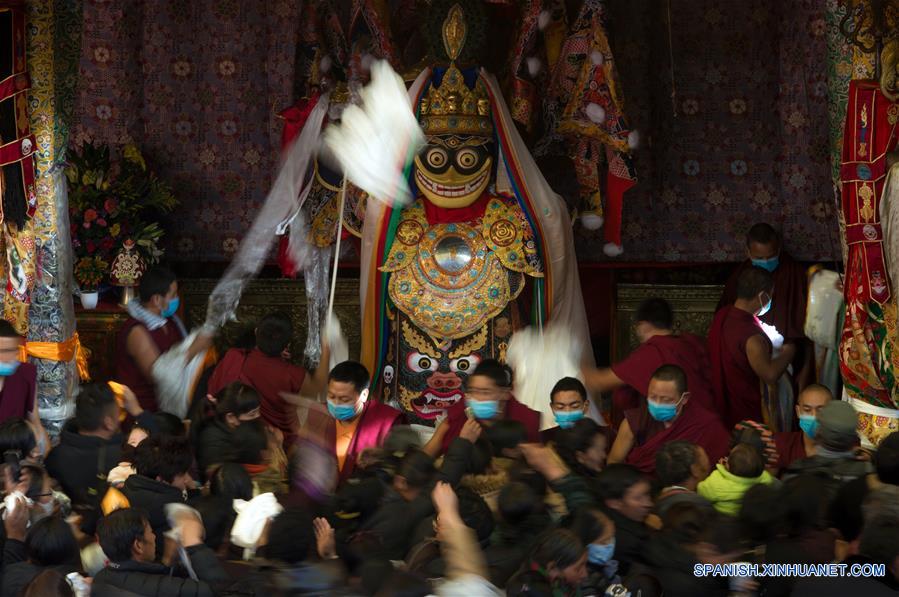 LHASA, diciembre 13, 2016 (Xinhua) -- Personas celebran el Día del Hada en el Templo Jokhang en Lhasa, capital de la región autónoma del Tíbet, en el suroeste de China, el 13 de diciembre de 2016. El Día del Hada se celebra el día 15 del mes 10 del calendario tibetano. En este día, los tibetanos celebran para conmemorar a Buddha Aleanterre Brahm. (Xinhua/Purbu Zhaxi)