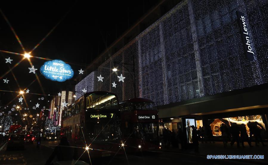 LONDRES, diciembre 13, 2016 (Xinhua) -- Personas caminan por una calle decorada con luces navide?as en el centro de Londres, capital de Reino Unido, el 13 de diciembre de 2016. (Xinhua/Han Yan)