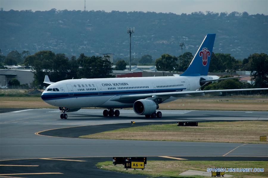 ADELAIDA, diciembre 13, 2016 (Xinhua) -- El avión CZ663 de la empresa China Southern Airlines, el primer vuelo directo de Guangzhou a Adelaida, aterriza en el Aeropuerto de Adelaida, Australia, el 13 de diciembre de 2016. El primer vuelo directo de la ciudad meridional china de Guangzhou llegó el martes a Adelaida. El Aeropuerto de Adelaida recibió su vuelo principal con el saludo del ca?ón de agua. (Xinhua/Xu Haijing)