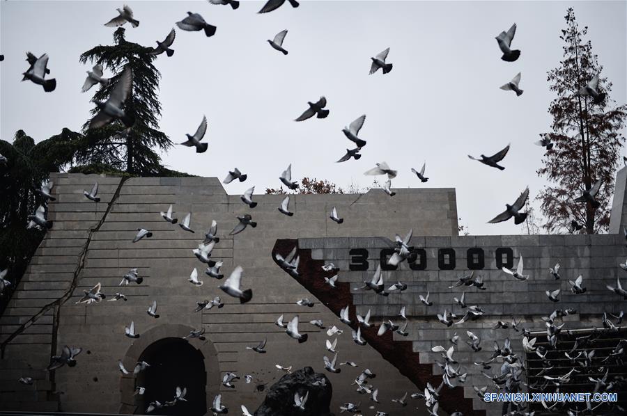 NANJING, diciembre 13, 2016 (Xinhua) -- Palomas vuelan durante una ceremonia memorial estatal para celebrar el Día Nacional Conmemorativo por las Víctimas de la Masacre de Nanjing, en el Salón Memorial de las Víctimas de la Masacre de Nanjing por los Invasores Japoneses, en Nanjing, en la provincia de Jiangsu, en el este de China, el 13 de diciembre de 2016. (Xinhua/Li Xiang)