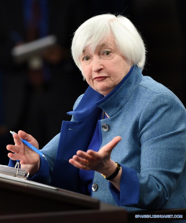WASHINGTON D.C, diciembre 14, 2016 (Xinhua) -- La presidenta de la Reserva Federal estadounidense, Janet Yellen, participa durante una conferencia de prensa llevada a cabo en Washington D.C., capital de Estados Unidos de América, el 14 de diciembre de 2016. La Reserva Federal estadounidense decidió el miércoles elevar la tasa de interés de referencia en 25 puntos base, en el primer y único aumento de 2016. (Xinhua/Bao Dandan)