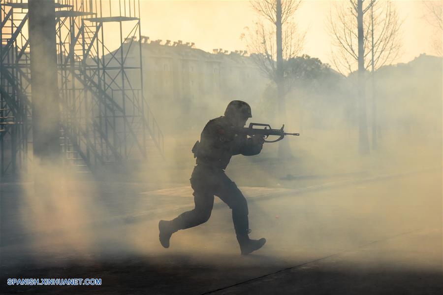 HEFEI, diciembre 16, 2016 (Xinhua) -- Un miembro del equipo de Armas y Tácticas Especiales (SWAT, por sus siglas en inglés) participa en un entrenamiento, en Hefei, capital de la provincia de Anhui, en el este de China, el 16 de diciembre de 2016. El equipo SWAT local realizó un entrenamiento de diez días de duración desde el 10 de diciembre para menjorar sus habilidades tácticas. (Xinhua/Guo Chen)