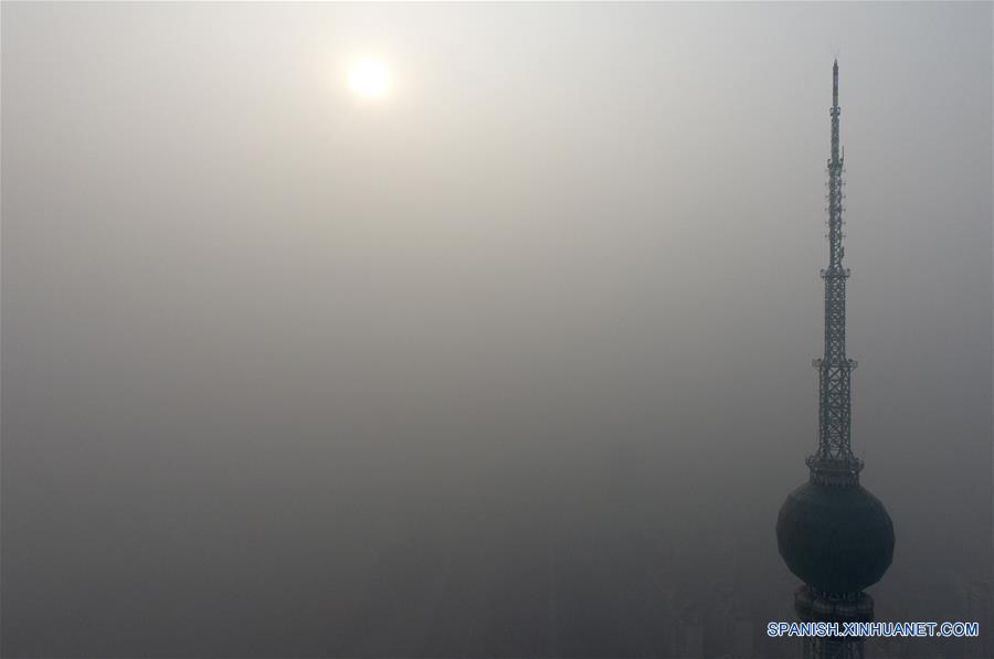 HENAN, diciembre 19, 2016 (Xinhua) -- Vista de una torre envuelta en esmog en la ciudad de Luoyang, en la provincia de Henan, en el centro de China, el 19 de diciembre de 2016. Esmog severo continuó cubriendo el norte de China y empeoró el lunes por la tarde, interrumpiendo la vida diaria en docenas de ciudades. (Xinhua/Zhang Xiaoli)