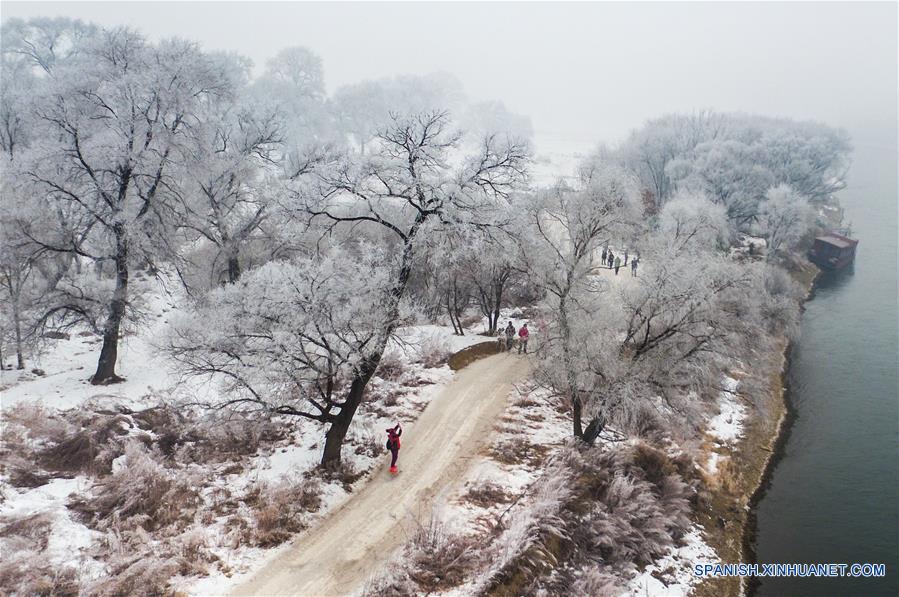 JILIN, diciembre 19, 2016 (Xinhua) -- Turistas disfrutan del paisaje escarchado, en un lugar escénico de la ciudad de Jilin, en la provincia de Jilin, en el noreste de China, el 19 de diciembre de 2016. (Xinhua/Xu Chang)