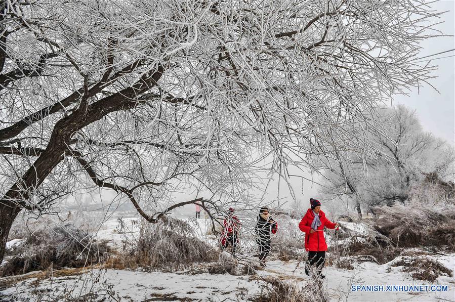 JILIN, diciembre 19, 2016 (Xinhua) -- Turistas disfrutan del paisaje escarchado, en un lugar escénico de la ciudad de Jilin, en la provincia de Jilin, en el noreste de China, el 19 de diciembre de 2016. (Xinhua/Xu Chang)