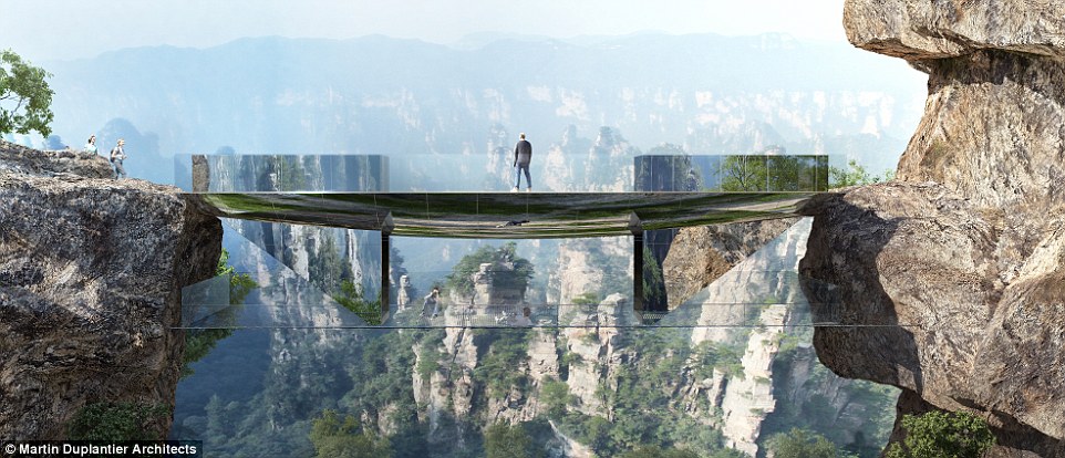 Ahora los arquitectos han ido más lejos, proyectando un puente "invisible" que será espectacular y aterrador. La increíble estructura está concebida para mezclarse con el paisaje de las monta?as de Zhangjiajie.