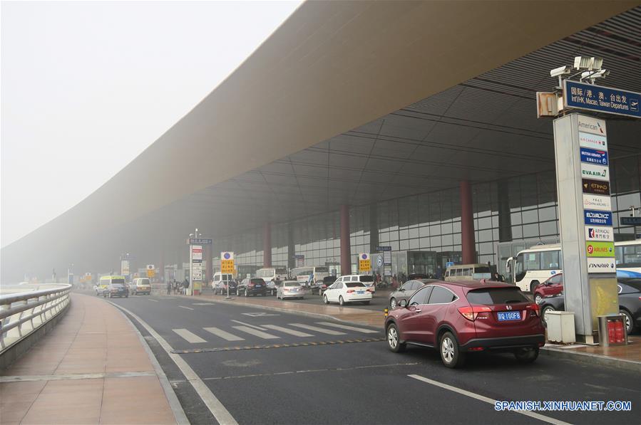 BEIJING, diciembre 20, 2016 (Xinhua) -- El Aeropuerto Internacional Capital de Beijing es envuelto por el esmog, en Beijing, capital de China, el 20 de diciembre de 2016. El pesado esmog del lunes por la noche a las primeras horas de martes ha causado demoras y cancelaciones de vuelos generalizada en el aeropuerto. (Xinhua/Li Mingfang)