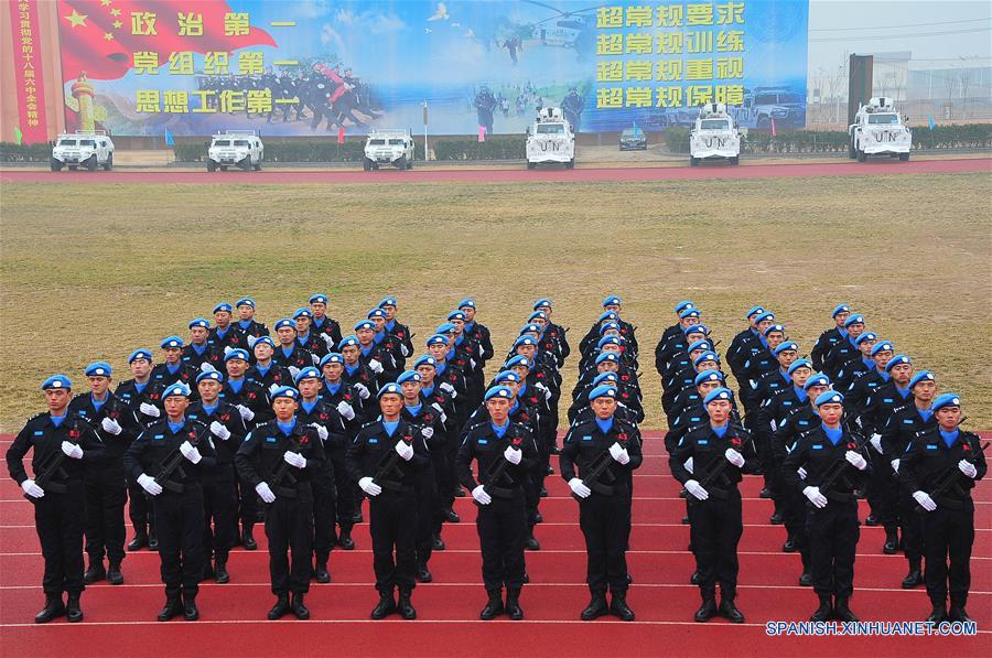 SHANDONG, diciembre 22, 2016 (Xinhua) -- Miembros de la Fuerza de Mantenimiento de Paz en Espera de China asisten a la ceremonia de fundación de la fuerza, en la ciudad de Dongying, provincia de Shandong, en el este de China, el 22 de diciembre de 2016. La Fuerza de Mantenimiento de Paz en Espera de China bajo el Ministerio de Seguridad Pública ha sido formada el jueves en la ciudad de Dongying. La fuerza se compone de más de 300 personas, con un promedio de edad de 27 a?os, seleccionadas de las fuerzas de control fronterizo de todo el país. (Xinhua/Shao Kun)