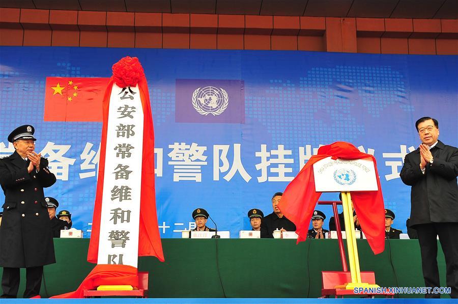 SHANDONG, diciembre 22, 2016 (Xinhua) -- La ceremonia de fundación de la Fuerza de Mantenimiento de Paz en Espera de China es llevada a cabo en la ciudad de Dongying, provincia de Shandong, en el este de China, el 22 de diciembre de 2016. La Fuerza de Mantenimiento de Paz en Espera de China bajo el Ministerio de Seguridad Pública ha sido formada el jueves en la ciudad de Dongying. La fuerza se compone de más de 300 personas, con un promedio de edad de 27 a?os, seleccionadas de las fuerzas de control fronterizo de todo el país. (Xinhua/Shao Kun)