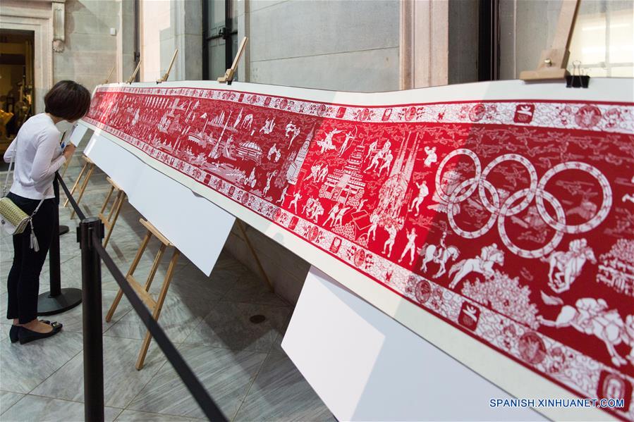 Una visitante observaba una obra de papel grabado en Nueva York, Estados Unidos, el 13 de julio. (Xinhua/Li Muzi)