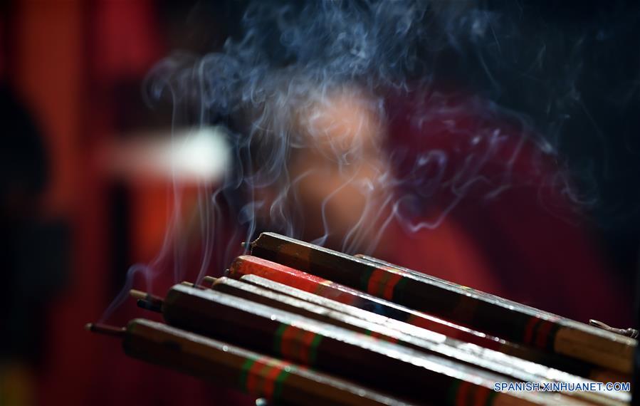 Imagen del 2 de enero de 2017 de peque?as columnas de humo emanando del incienso durante un ensablaje de dharma en la lamasería Jiangsi en el condado de Qushui de Lhasa, capital de la región autónoma del Tíbet, en el suroeste de China. Más de 200 monjes de la lamasería y otros templos participaron el lunes en el ensablaje de dharma. (Xinhua/Chogo)