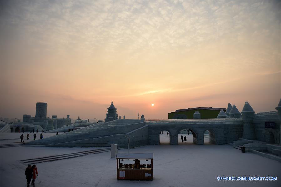 Personas visitan el Mundo de Hielo y Nieve de Harbin, en Harbin, capital de la provincia de Heilongjiang, en el noreste de China, el 3 de enero de 2017. (Xinhua/Wang Jianwei)