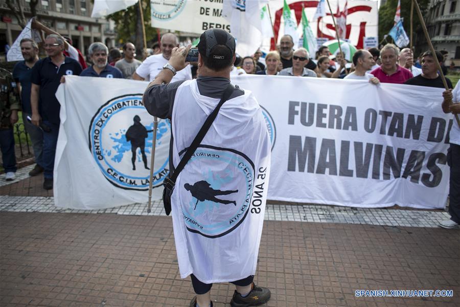 Una persona participa en una "Ronda por la Soberanía", en Buenos Aires, Argentina, el 3 de enero de 2017. De acuerdo con información de la prensa local, veteranos que combatieron en las Islas Malvinas y organizaciones políticas y de derechos humanos organizaron la protesta en el marco del 184 aniversario de la ocupación británica de las Islas Malvinas. (Xinhua/Martín Zabala)