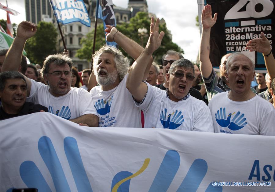 Personas participan en una "Ronda por la Soberanía", en Buenos Aires, Argentina, el 3 de enero de 2017. De acuerdo con información de la prensa local, veteranos que combatieron en las Islas Malvinas y organizaciones políticas y de derechos humanos organizaron la protesta en el marco del 184 aniversario de la ocupación británica de las Islas Malvinas. (Xinhua/Martín Zabala)