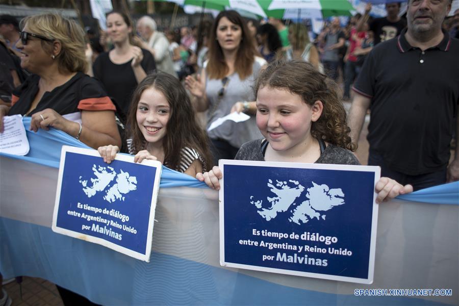 Ni?as participan en una "Ronda por la Soberanía", en Buenos Aires, Argentina, el 3 de enero de 2017. De acuerdo con información de la prensa local, veteranos que combatieron en las Islas Malvinas y organizaciones políticas y de derechos humanos organizaron la protesta en el marco del 184 aniversario de la ocupación británica de las Islas Malvinas. (Xinhua/Martín Zabala)