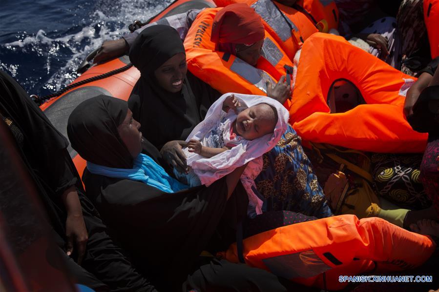Varias mujeres y bebés fueron rescatados por una organización de rescate en el mar mediterraneo el 28 de agosto. (Xinhua/AP)