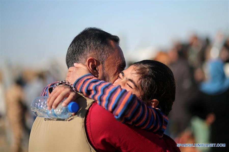 Un hombre y su hija se abrazaron después de mucho tiempo de separación el 26 de noviembre en un campamento de refugiados en Irak. (Xinhua/Reuters)