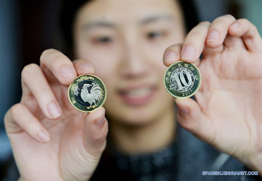 ZHEJIANG, enero 4, 2017 (Xinhua) -- Una residente muestra las monedas conmemorativas por el A?o del Gallo, en Yuyao, provincia de Zhejiang, en el este de China, el 4 de enero de 2017. El Banco Popular de China emitió el miércoles monedas conmemorativas de 10 yuanes. (Xinhua/Yao Kebin)