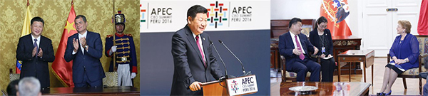 Se trata de la tercera visita de Xi Jinping a América Latina desde que asumiera la presidencia de China. Las relaciones bilaterales entre China y Ecuador han logrado “dos grandes saltos” en los dos últimos a?os, y han alcanzado el nivel de asociación estratégica integral. China y Perú han promovido conjuntamente la asociación estratégica integral a un nuevo nivel. Además China y Chile anunciaron el establecimiento de una asociación estratégica integral y el inicio de las negociaciones para la actualización de un Tratado de Libre Comercio.