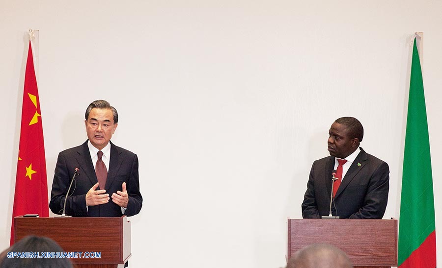 El ministro de Relaciones Exteriores chino, Wang Yi, asiste a una conferencia de prensa con su homólogo zambiano, Harry Kalaba, en Lusaka, capital de Zambia, el 8 de enero de 2017. (Xinhua/Peng Lijun)
