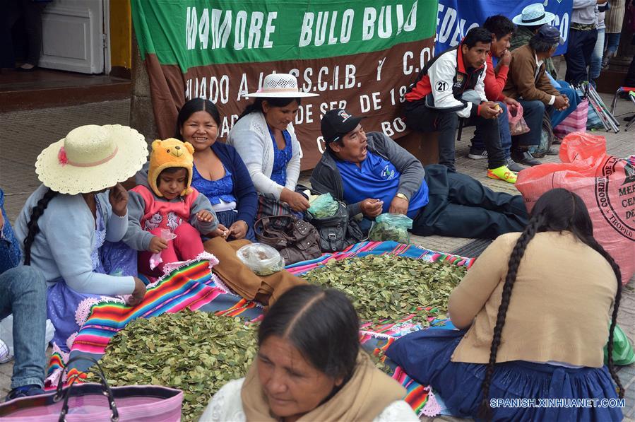 Personas participan durante un festejo en el marco del Día Nacional del Acullico, en Cochabamba, Bolivia, el 11 de enero de 2017. Bolivia conmemora el miércoles el Día Nacional del Acullico (masticación de la hoja de coca) con una serie de actividades, con el fin de mostrar al mundo las bondades de la planta y sus derivados. Según el ministro boliviano de Desarrollo Rural y Tierras, César Cocarico, el 11 de enero se conmemora el Día Nacional del Acullico, debido a que en esa fecha de 2013 Bolivia se adhirió a la "Convención única de las Naciones Unidas sobre Estupefacientes de 1961, emanada del Protocolo de 1972", con la reserva de permitir la masticación tradicional de la hoja de coca en todo el territorio nacional. El acullico es la masticación de la hoja de coca y es un modo de consumo particular ancestral y tradicional, como símbolo de diálogo, reciprocidad y equilibrio con la naturaleza, la masticación tradicional es conocida en los valles como "boleo" y en el este como "pijcheo". (Xinhua/Patricio Pinto/ABI)