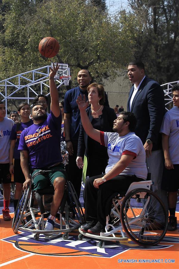 CIUDAD DE MEXICO, enero 14, 2017 (Xinhua) -- La embajadora de Estados Unidos de América en México, Roberta Jacobson (c), participa durante la inauguración de cuatro canchas de baloncesto rehabilitadas en Ciudad Deportiva de Magdalena Mixhuca en la Ciudad de México, capital de México, el 14 de enero de 2017. De acuerdo con información de la prensa local, las canchas fueron rehabilitadas con apoyo del programa de la Asociación Nacional de Baloncesto (NBA, por sus siglas en inglés) estadounidense, NBA Cares Legacy. (Xinhua/Str)