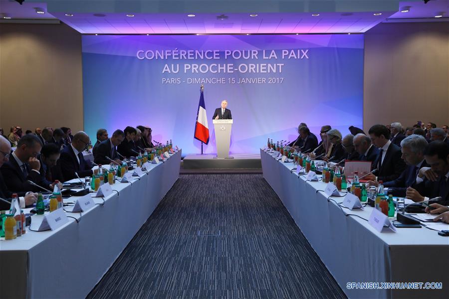 PARIS, 15 ene (Xinhua) -- Francia celebró hoy una reunión internacional para buscar la forma de reactivar las negociaciones de paz en Medio Oriente y de impulsar la implementación de una solución de dos Estados que restablezca la seguridad en la región después de décadas de conflicto.