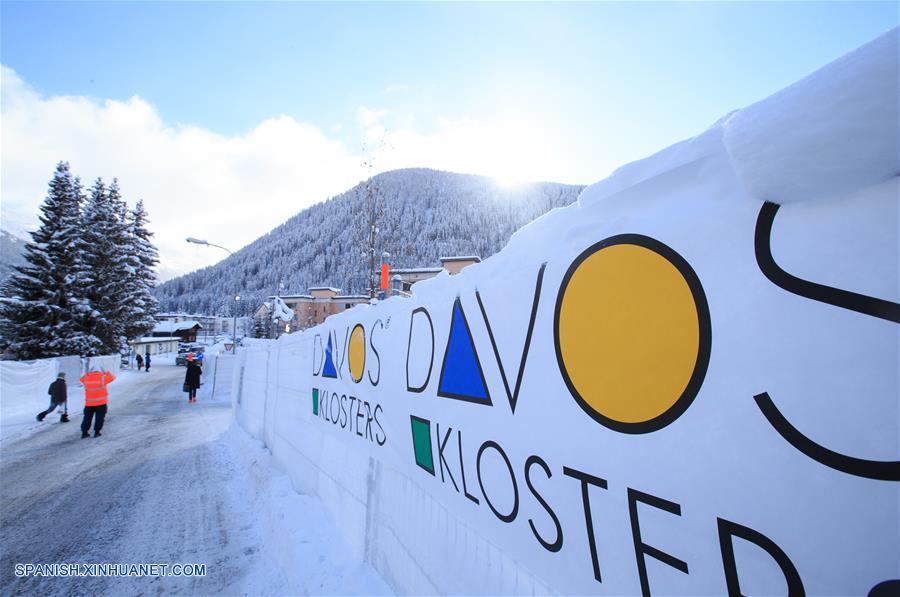 DAVOS, enero 16, 2017 (Xinhua) -- Personas caminan frente a un cartel del Foro Económico Mundial (WEF, por sus siglas en inglés), durante las preparaciones para la 47 Reunión Anual del Foro Económico Mundial en Davos, Suiza, el 16 de enero de 2017. De acuerdo con información de la prensa local, la 47 Reunión Anual del Foro Económico Mundial se llevará a cabo del 17 al 20 de enero este a?o. (Xinhua/Xu Jinquan)