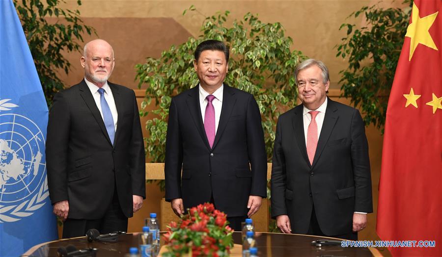 Xi hizo la declaración durante una reunión con Peter Thomson, presidente de la 71° Asamblea General de la ONU, y el secretario general de la organización, António Guterres, en la oficina de la ONU en Ginebra.
