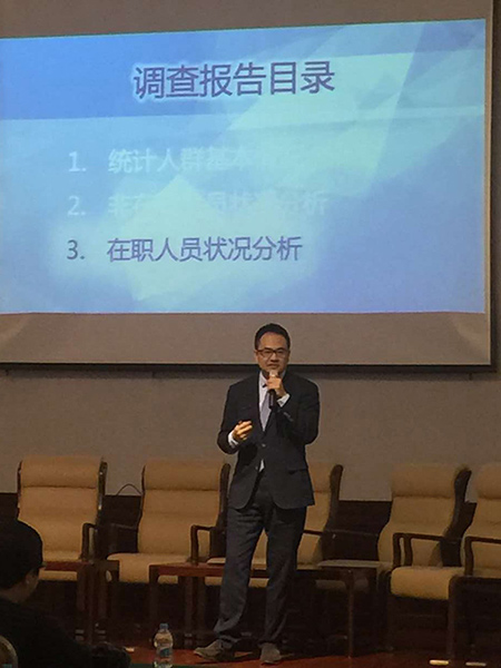 Lou Yu, co-fundadora de la CECLA y Chen Zhiyu, representante jefe de la filian China de la Escuela de Negocios INCAE presentaron el informe, que se divide en tres partes: datos personales de las personas cuestionadas, análisis de los profesionales empleados y los que no tienen trabajo.