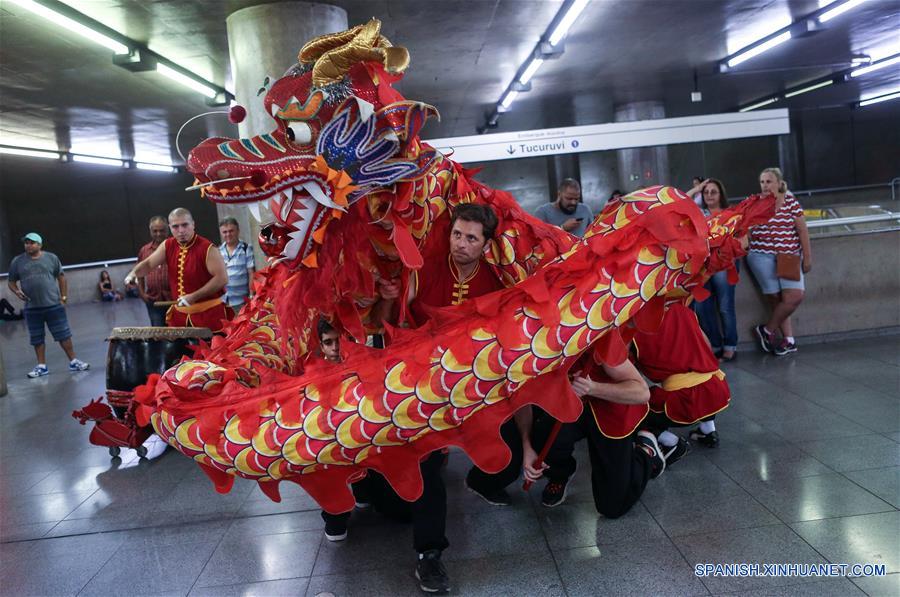 Una danza del dragón y del león es interpretada para anunciar las celebraciones del A?o Nuevo Lunar chino, en el interior de la Estación Sé del Metro de Sao Paulo, en Sao Paulo, Brasil, el 24 de enero de 2017. El Festival de Primavera o A?o Nuevo Lunar chino, se celebra el 28 de enero este a?o. (Xinhua/Rahel Patrasso)