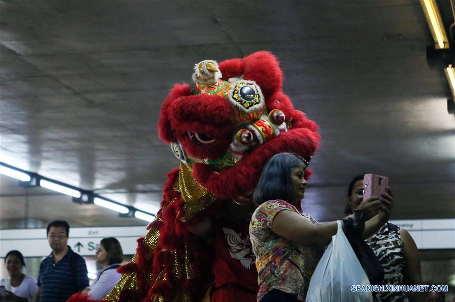 Una danza del dragón y del león es interpretada para anunciar las celebraciones del A?o Nuevo Lunar chino, en el interior de la Estación Sé del Metro de Sao Paulo, en Sao Paulo, Brasil, el 24 de enero de 2017. El Festival de Primavera o A?o Nuevo Lunar chino, se celebra el 28 de enero este a?o. (Xinhua/Rahel Patrasso)