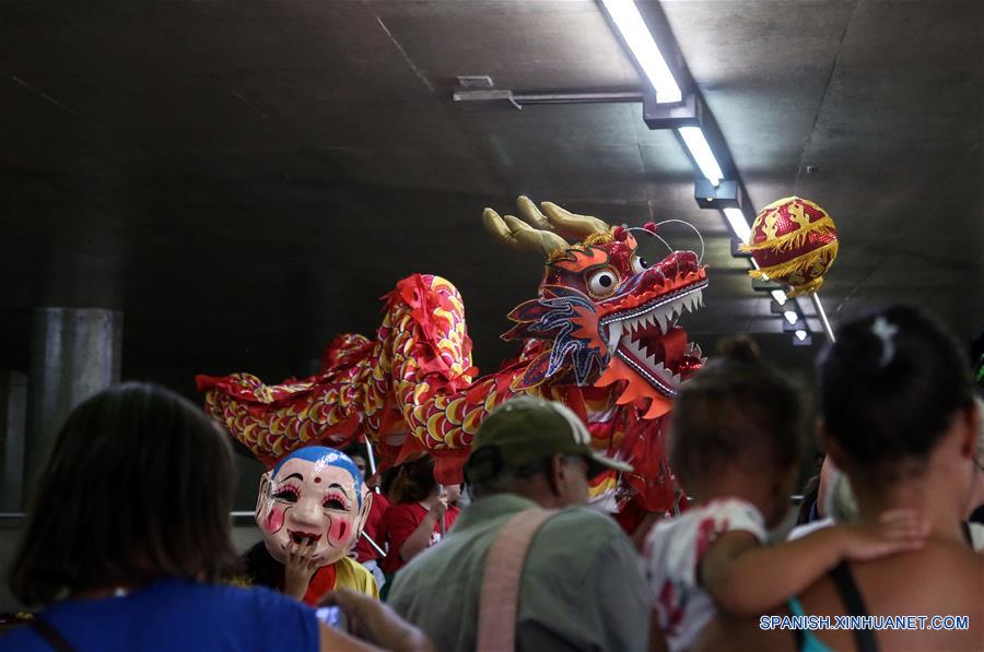 SAO PAULO, enero 24, 2017 (Xinhua) -- Una danza del dragón y del león es interpretada para anunciar las celebraciones del A?o Nuevo Lunar chino, en el interior de la Estación Sé del Metro de Sao Paulo, en Sao Paulo, Brasil, el 24 de enero de 2017. El Festival de Primavera o A?o Nuevo Lunar chino, se celebra el 28 de enero este a?o. (Xinhua/Rahel Patrasso)