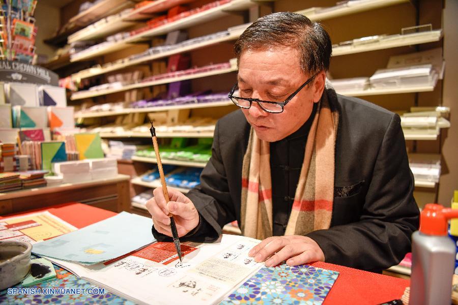 El dise?ador de las estampillas, el pintor chino Li Zhongyao (Xinhua/Chen Yichen)
