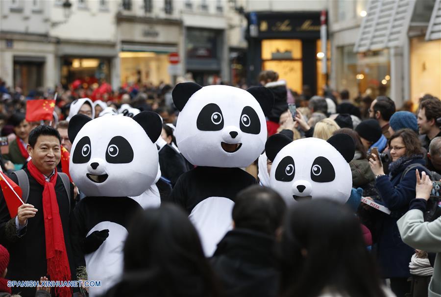 BRUSELAS, enero 28, 2017 (Xinhua) -- Personas disfrazadas como pandas gigantes participan durante el Desfile del A?o Nuevo Lunar chino en el centro de Bruselas, Bélgica, el 28 de enero de 2017. (Xinhua/Ye Pingfan)