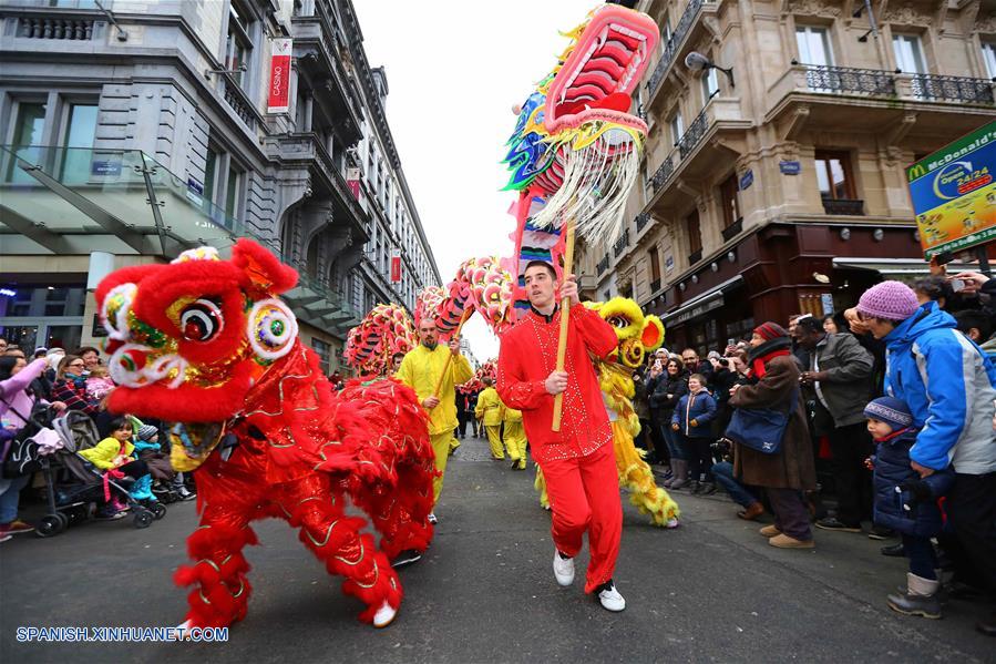 BRUSELAS, enero 28, 2017 (Xinhua) -- Personas participan durante el Desfile del A?o Nuevo Lunar chino en el centro de Bruselas, Bélgica, el 28 de enero de 2017. (Xinhua/Gong Bing)
