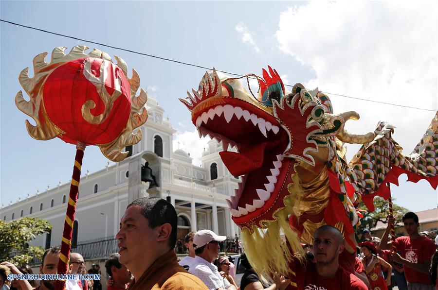 SAN JOSE, enero 28, 2017 (Xinhua) -- Personas realizan la danza del dragón durante las celebraciones del A?o Nuevo Lunar chino, en el Barrio Chino de San José, capital de Costa Rica, el 28 de enero de 2017. El Festival de Primavera o A?o Nuevo Lunar chino, se celebra el 28 de enero este a?o. (Xinhua/Kent Gilbert)