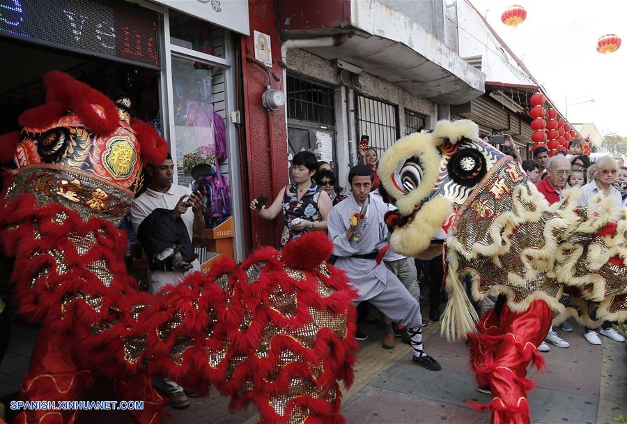 SAN JOSE, enero 28, 2017 (Xinhua) -- Personas realizan la danza del león durante las celebraciones del A?o Nuevo Lunar chino, en el Barrio Chino de San José, capital de Costa Rica, el 28 de enero de 2017. El Festival de Primavera o A?o Nuevo Lunar chino, se celebra el 28 de enero este a?o. (Xinhua/Kent Gilbert)