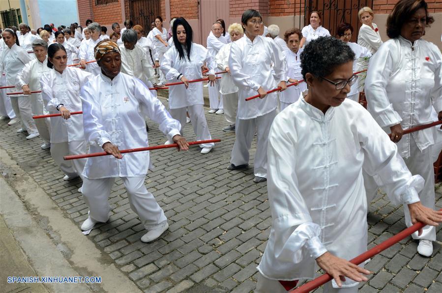 LA HABANA, enero 28, 2017 (Xinhua) -- Personas actúan durante el espectáculo de bienvenida al A?o Nuevo Lunar chino a cargo de la Escuela Cubana de Wushu, en el Barrio Chino en La Habana, Cuba, el 28 de enero de 2017. El Festival de Primavera o A?o Nuevo Lunar chino, se celebra el 28 de enero este a?o. (Xinhua/Joaquín Hernández)