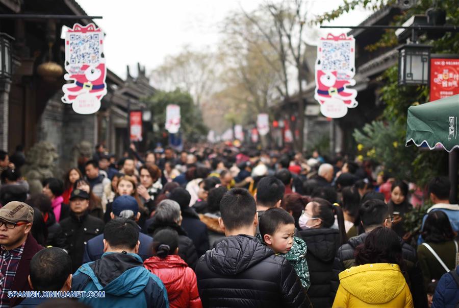 SICHUAN, enero 28, 2017 (Xinhua) -- Turistas visitan el Distrito Histórico de Kuanzhai Lane en Chengdu, capital de la provincia de Sichuan, en el suroeste de China, el 28 de enero de 2017. De acuerdo con datos de la Administración Nacional de Turismo de China, del sábado, el número de turistas recibidos en China alcanzó los 65.2 millones, generando ingresos totales por un valor de 76,000 millones de yuanes (aproximadamente 11,100 millones de dólares estadounidenses). (Xinhua/Xue Yubin)
