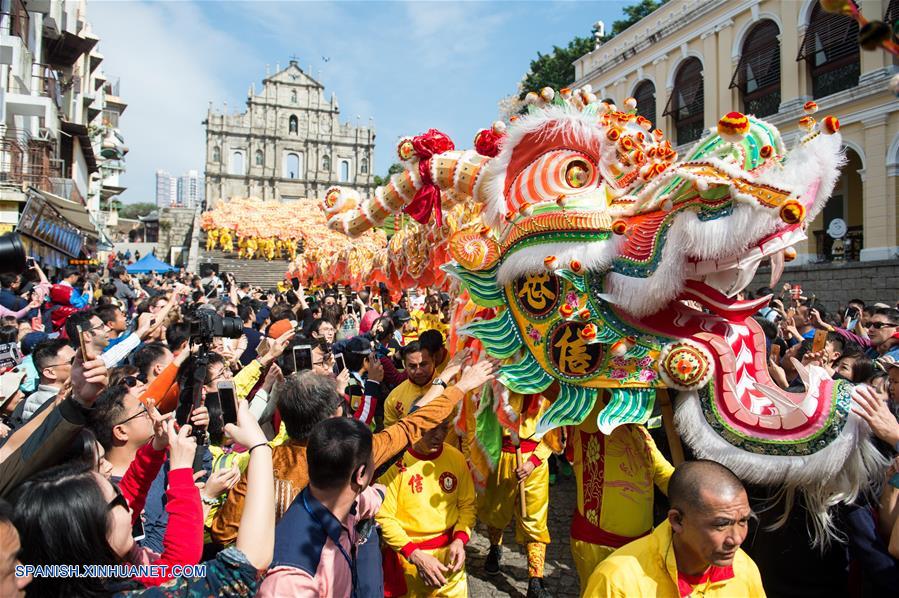 MACAO, enero 28, 2017 (Xinhua) -- Artistas realizan la danza del dragón para celebrar el A?o Nuevo Lunar chino en Macao, en el sur de China, el 28 de enero de 2017. (Xinhua/Cheong Kam Ka)