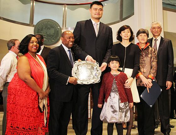 El jueves por la tarde, Sylvester Turner, alcalde de Houston, llevó a cabo una recepción especial para distinguir la carrera deportiva de Yao Ming.
