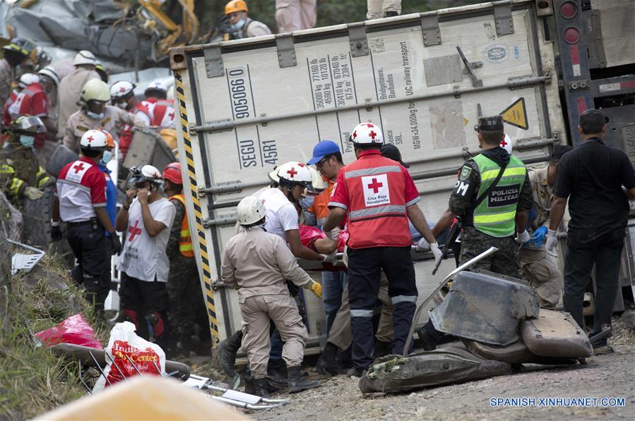 TEGUCIGALPA, febrero 5, 2017 (Xinhua) -- Rescatistas participan en la búsqueda de víctimas en el sitio donde un autobús interurbano colisionó con un camión de carga en Tegucigalpa, Honduras, el 5 de febrero de 2017. De acuerdo con información de la prensa local, al menos 17 personas murieron y varias decenas resultaron heridas a consecuencia del choque entre un autobús interurbano y un camión en una carretera del sur de Honduras. (Xinhua/Rafael Ochoa)