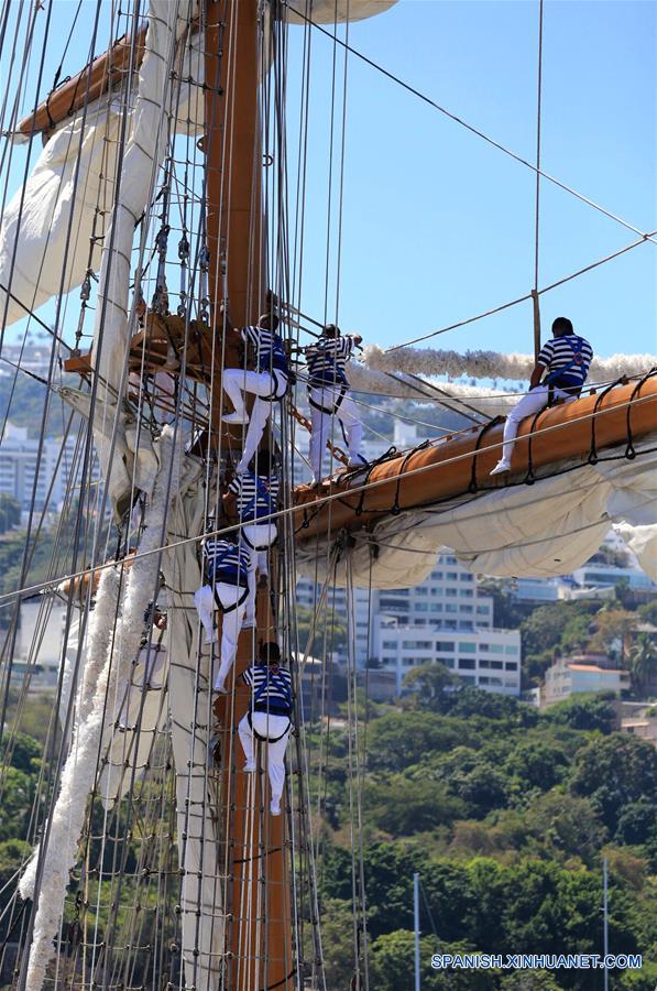 GUERRERO, febrero 6, 2017 (Xinhua) -- Marineros trabajan a bordo del buque escuela Cuauhtémoc en el puerto de Acapulco, en el estado de Guerrero, México, el 6 de febrero de 2017. El buque escuela Cuauhtémoc, un emblemático velero de la Marina-Armada de México, zarpó el lunes del balneario de Acapulco, en el sure?o estado de Guerrero, para recorrer 15 puertos del mundo, entre éstos, Shanghai, China. El buque comenzó en el puerto de Acapulco, en el Pacífico mexicano, un viaje de circunnavegación que lo llevará durante casi 10 meses por 12 países de América, Europa, Africa y Asia, informó la Secretaría de Marina-Armada de México. Los 234 tripulantes, entre mandos, instructores y cadetes, fueron despedidos con una ceremonia en cubierta presidida por el secretario de Marina, Vidal Francisco Soberón, y con la presencia de la primera dama, Angélica Rivera. (Xinhua/David Guzmán)