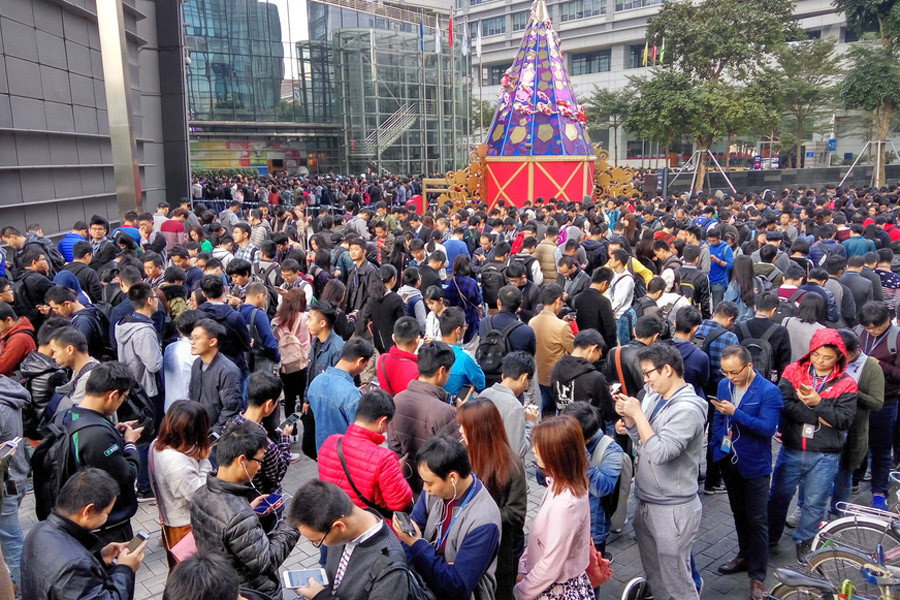 Este sábado en Shenzhen, provincia de Guangdong, coincidiendo con el octavo día del primer mes lunar y el primer día de regreso al trabajo, cientos de empleadosrecibieron su sobre rojo (hongbao) de manos dePony Ma,máximo director de Tencent.