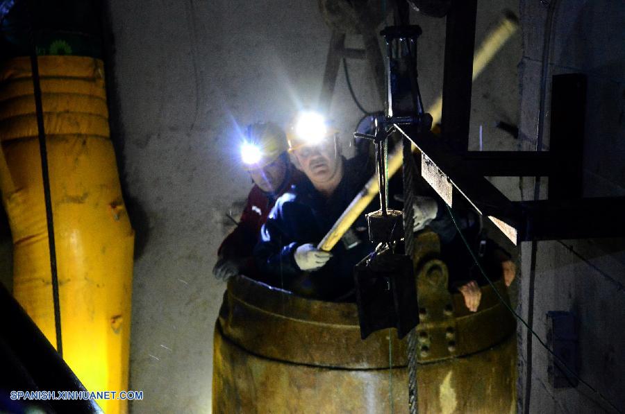 BULQIZA, febrero 10, 2017 (Xinhua) -- Imagen del 8 de febrero de 2017, de rescatistas trabajando en el rescate de los especialistas chinos en minería atrapados en Bulqiza, Albania. El presidente de Albania, Bujar Nishani, expresó el viernes condolencias y pesar por la trágica muerte de tres mineros chinos atrapados en una mina en el poblado de Bulqiza, nordeste del país. Los cuerpos de los tres mineros chinos que quedaron atrapados a causa de una explosión de gas de hidrógeno en la mina de cromo ocurrida el sábado pasado, fueron hallados el jueves por la noche luego de seis días de búsqueda intensa. (Xinhua/Liu Lihang)