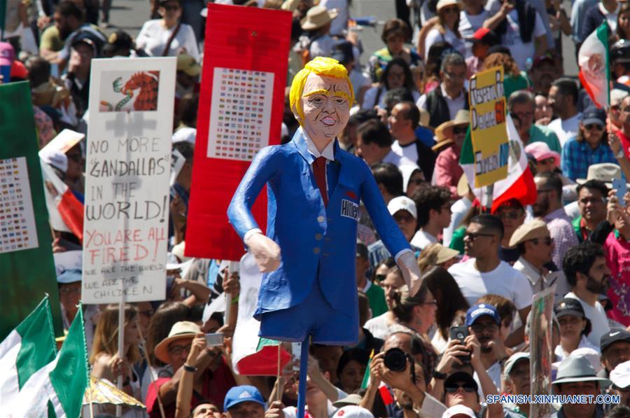 La mayoría de los asistentes a la movilización vestía de blanco y empu?aba banderas de México, país que ha sido blanco del republicano desde su precampa?a electoral en 2015.